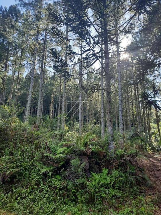 • Ha? cerca de um ano atra?s, uma empresa realizou uma ana?lise da floresta, empregando um drone. Nessa ocasia?o os seus levantamentos indicaram a existe?ncia de uma a?rea plantada de pinus, com a extensa?o de aproximadamente 1.200 ha. Infelizmente na?o dispomos desse levantamento, pois a dita empresa que havia manifestado interesse em uma eventual aquisic?a?o da a?rea, na?o nos forneceu co?pia.